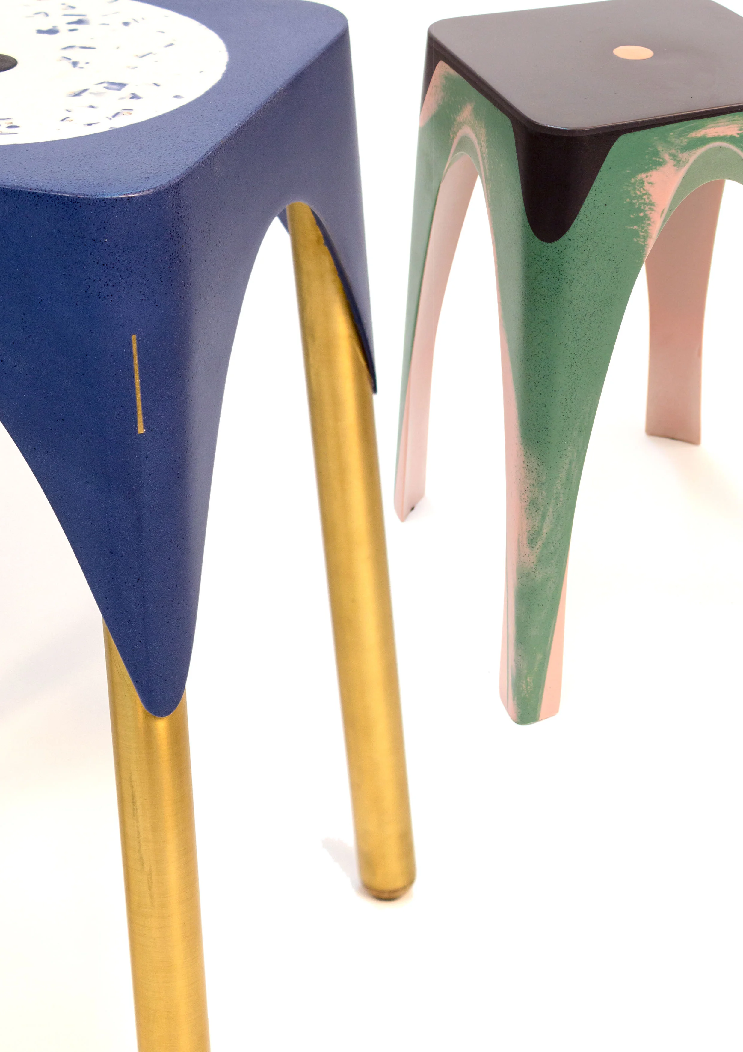 From this single, unique process, endless possibilities can be generated for the stools, as well as newer products. Moreover, from start to finish, an exceptionally finessed product can easily be created and assembled within Maor's studio. Each of these stools was formed in a single reusable rubber mold, from which infinite permutations of cast materials can come to life.