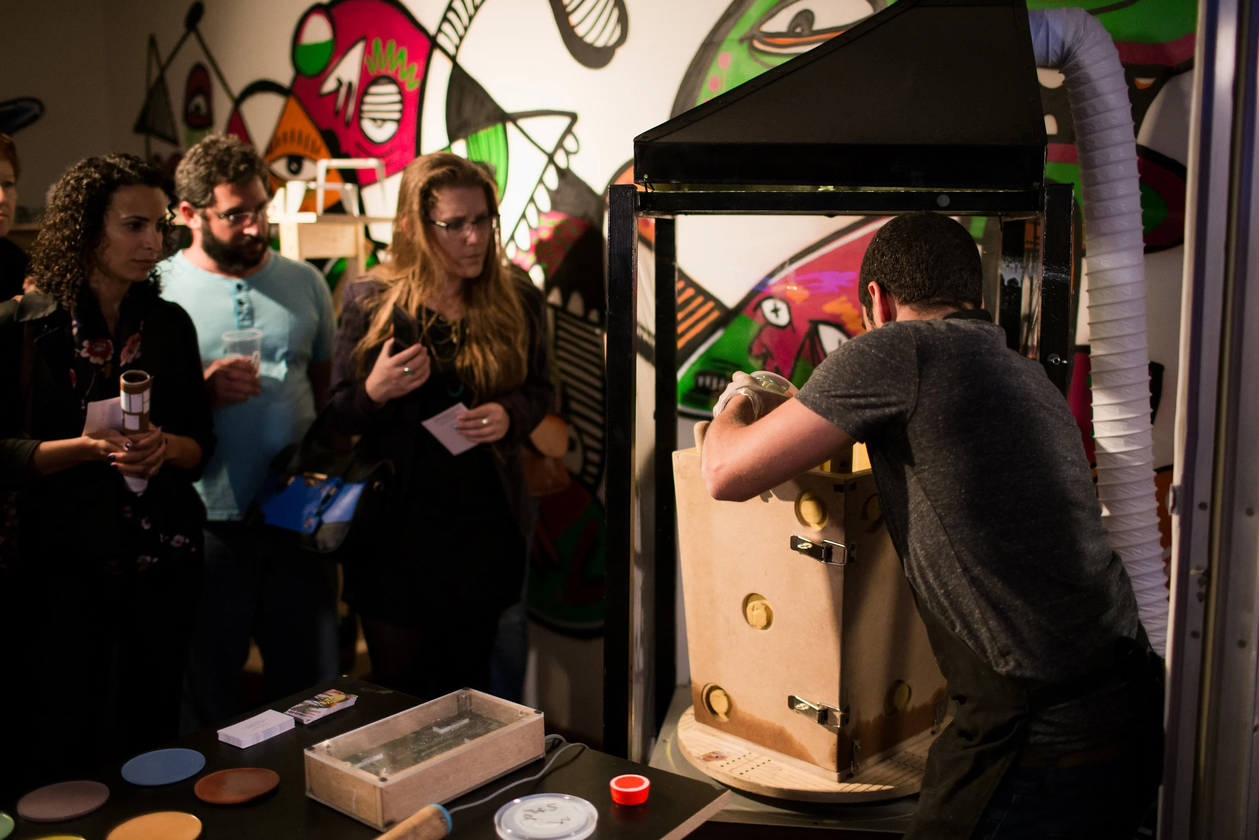 The "Matter of motion" project has seen immense recognition in the last few months. Earlier this year, a dynamic and interactive installation by Maor at Jerusalem Design Week saw hundreds of visitors gaining a hands-on experience of the bespoke casting process. Stools and smaller objects were cast in the centrifuge, in front of guests, allowing them to appreciate the making of these products as much as the exotic final result.