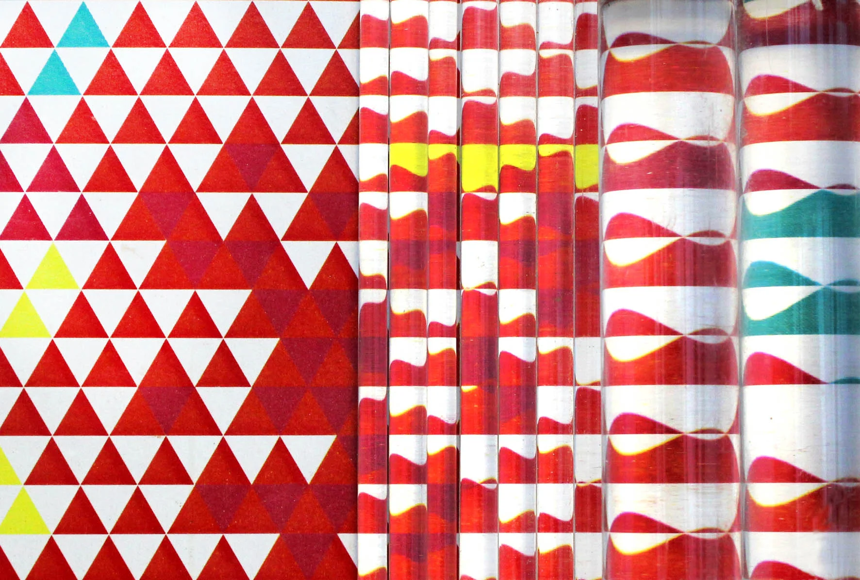 With the OP-Vase, Nur creates the illusion of a full bouquet from a single flower. The thick glass pieces are crafted in Istanbul and cut by hand to achieve a kaleidoscopic effect and precise, rounded corners. The OP-Vase collection is the culmination, as well as the continuation of a series of optical explorations by Nur, including OP-jects, the OP-Light and the Blossom light. Nur’s investigations into objects with optical abilities began during her time at the Royal College of Art, with a project whose brief "Minimum/Maximum" invoked the idea of making a camouflage and dissolving in space. Seen above is an image of Nur’s earliest exploration from the OP collection– a slim rod-like acrylic object and the patterns she developed for the OP-rod to morph and transform.