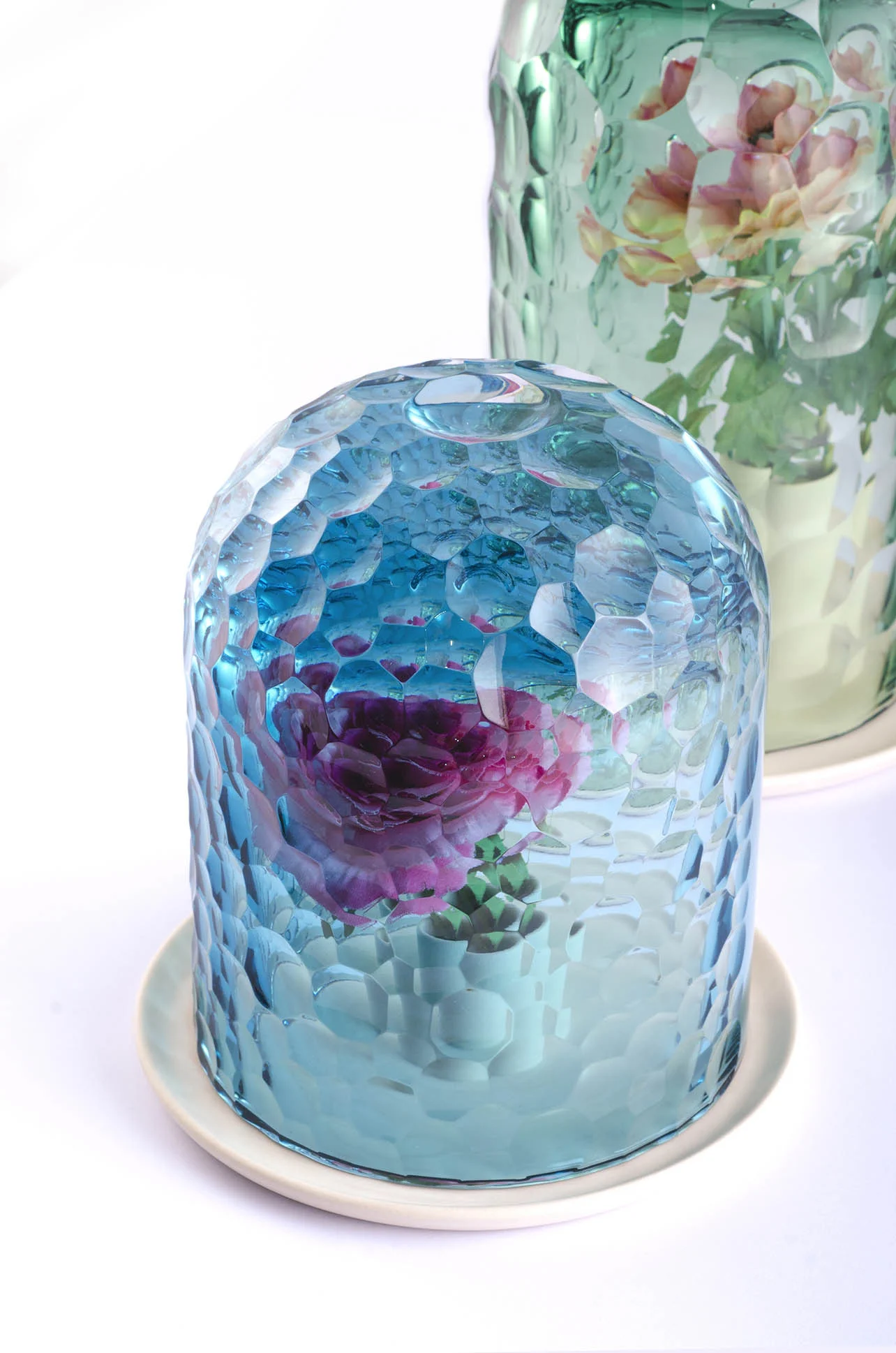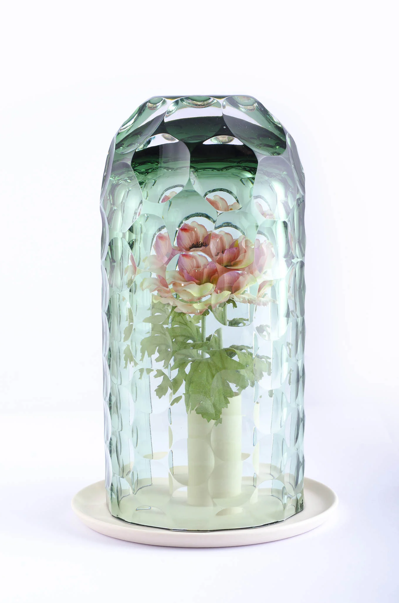 OP-Vase by Bilge Nur Saltik, creates a kaleidoscopic effect with its unique technique of cutting glass, a timeless material.