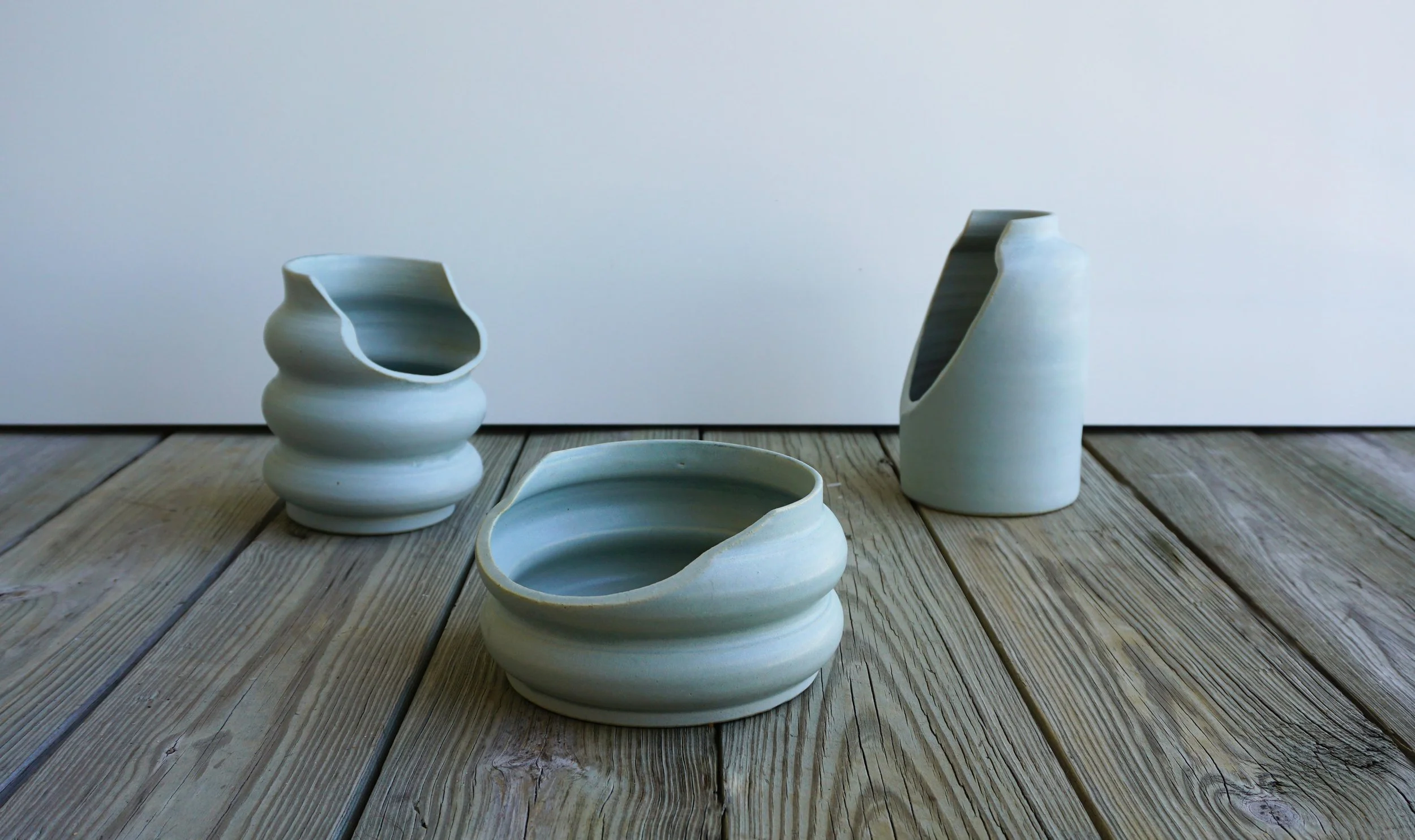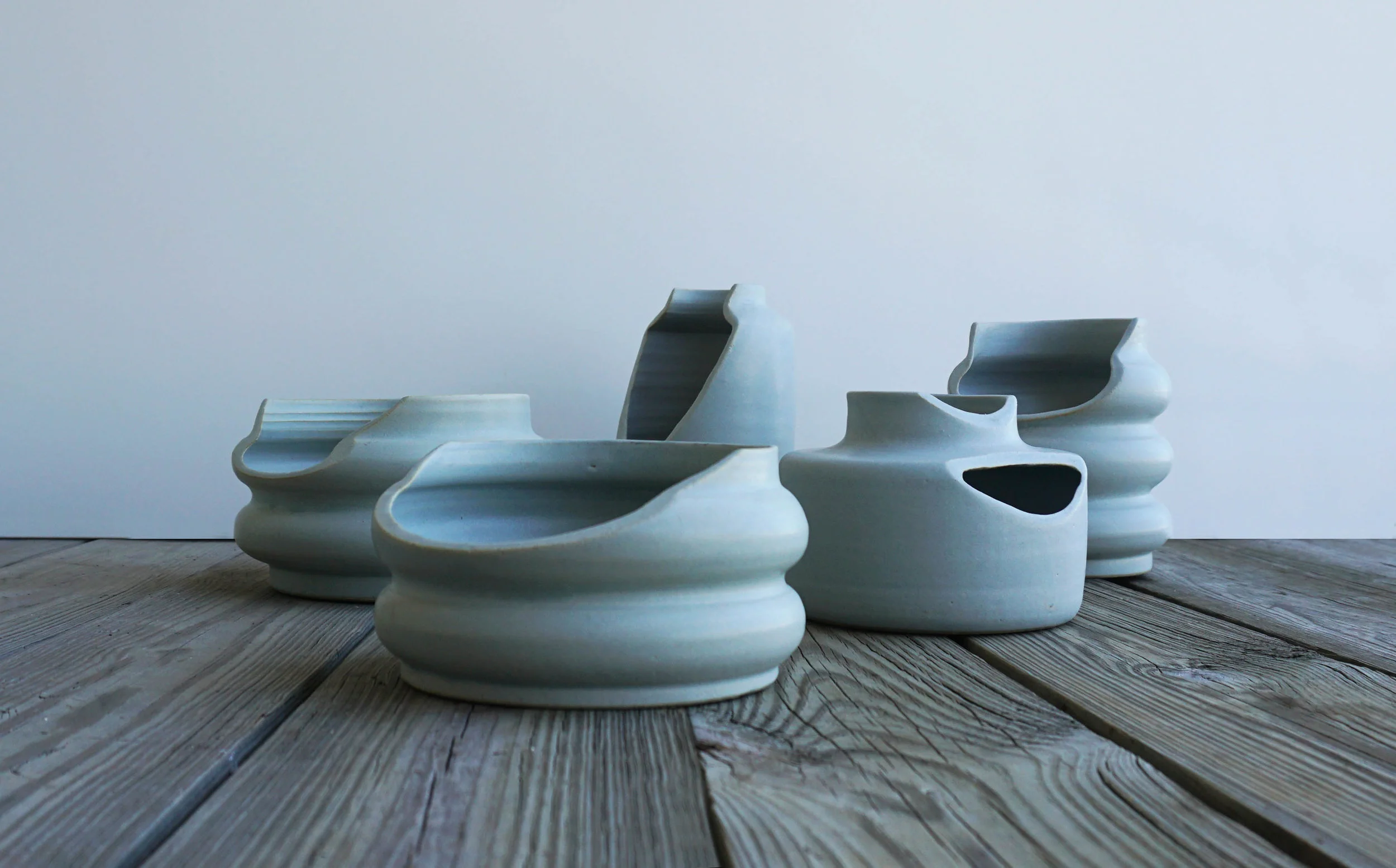 For the compromise collection, Nur drew inspiration from a common practice for ceramic artists– cutting ceramic vessels in half to check the thickness of their walls. An incredibly talented maker will almost make this cut with pride, exposing an even thickness and thin walls.